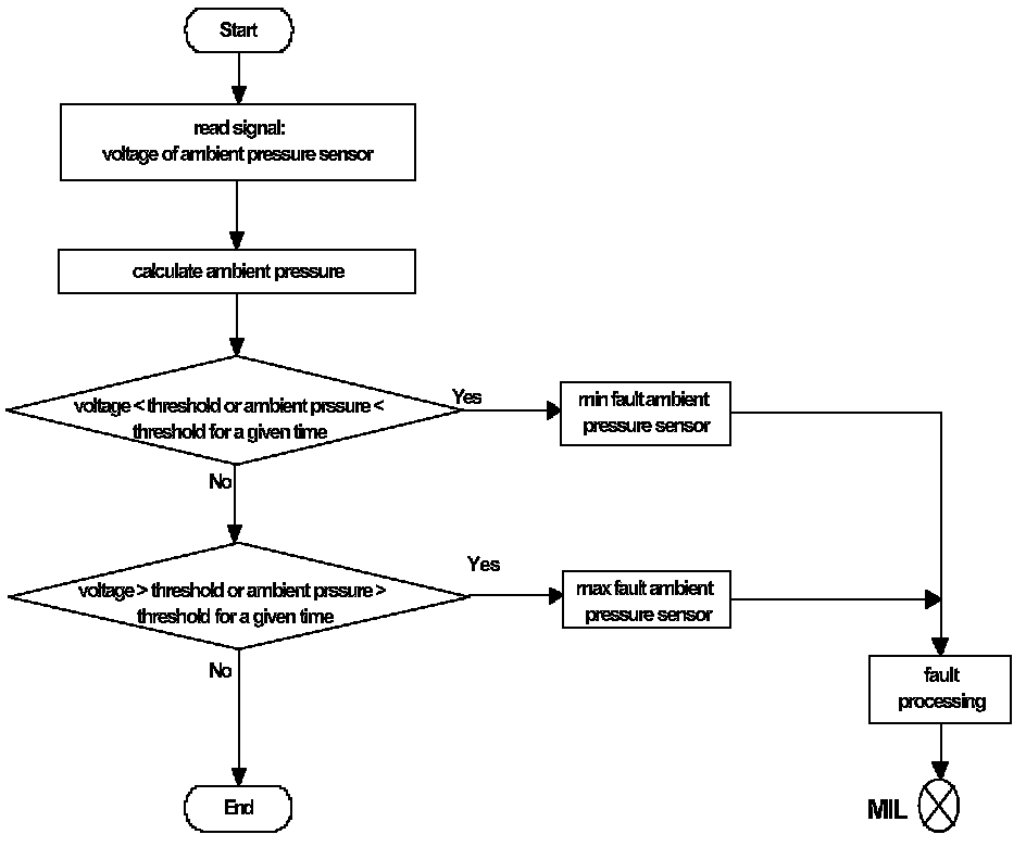 The diagnostic function observes the signal from the ambient pressure sensor for naturally aspirated engines without using a manifold pressure sensor.