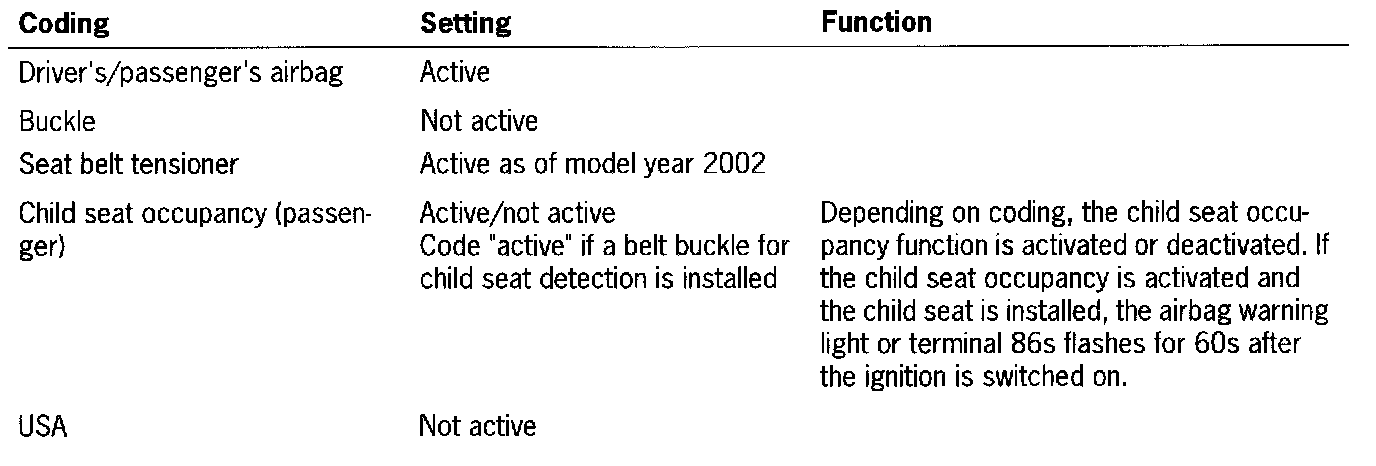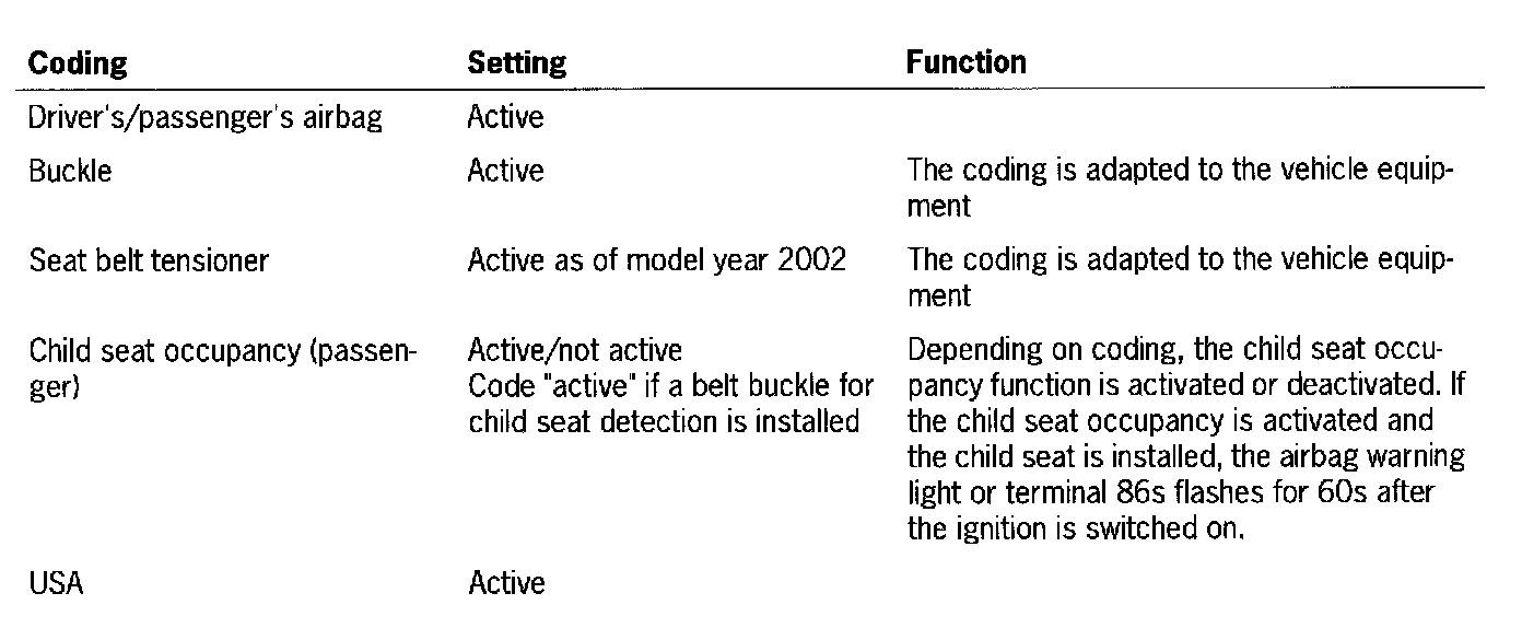 After the airbag triggering unit is replaced, the coding must be adapted to the vehicle equipment.