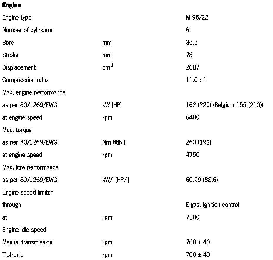 Engine specifications of the Boxster 2.7 l as of model '00