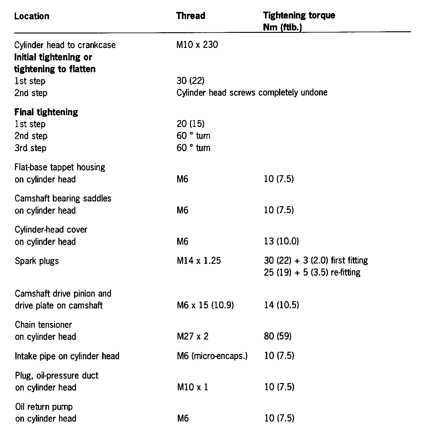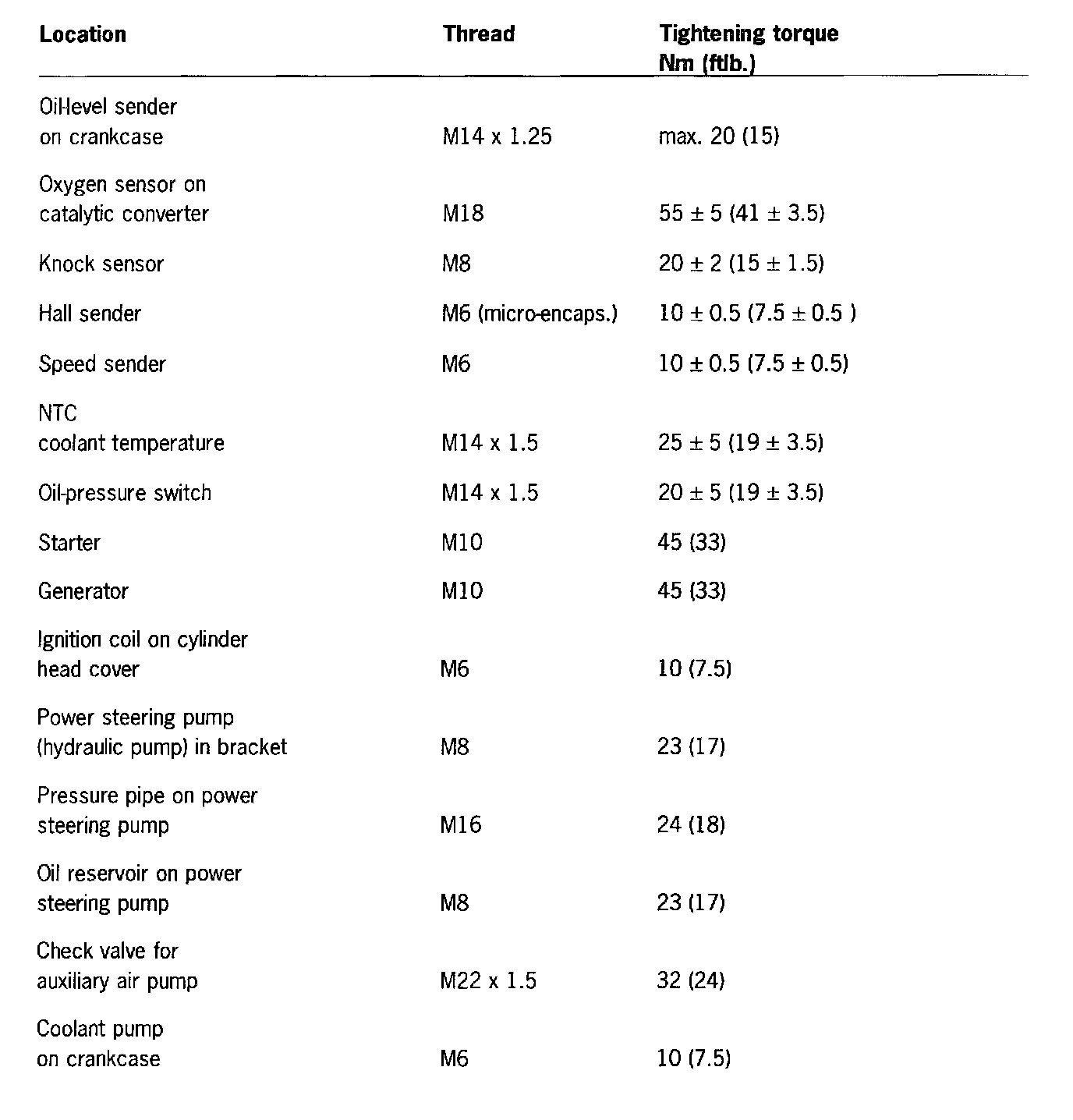 Tightening Torques