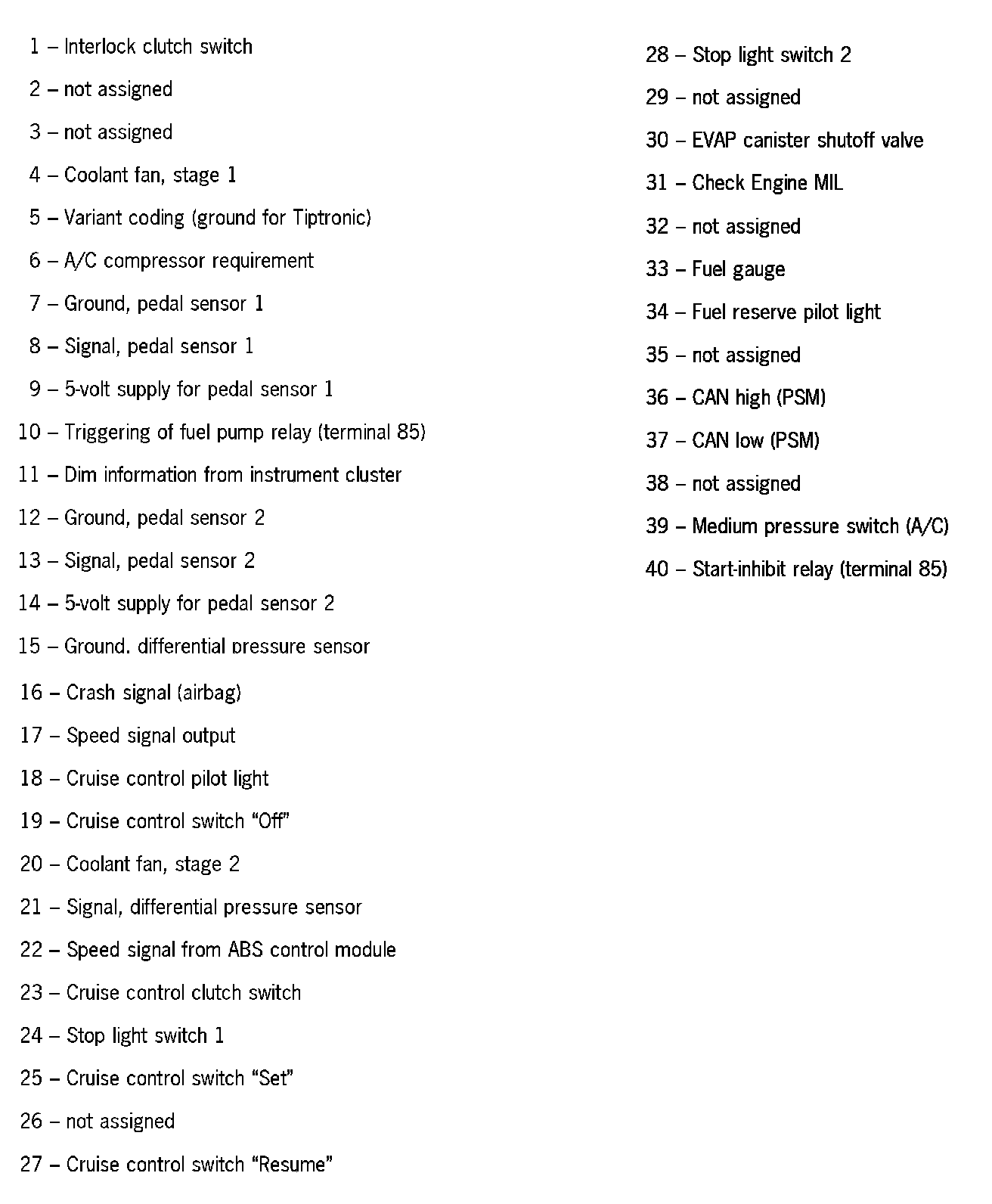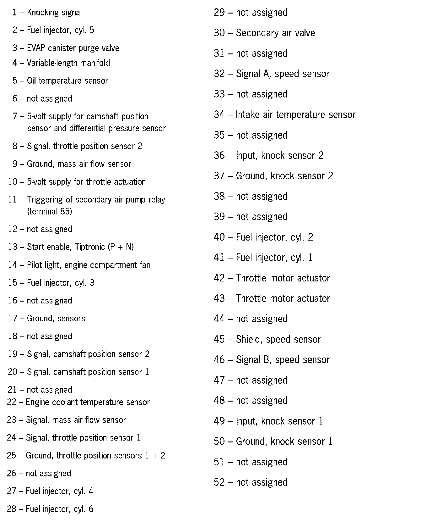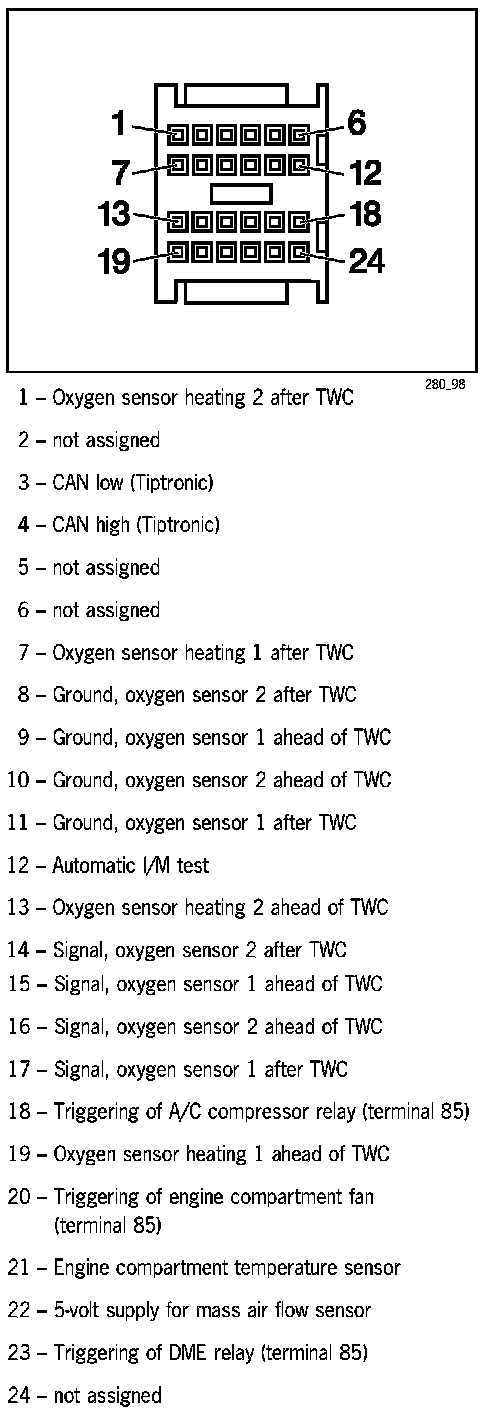 Home >> Porsche >> 2002 >> Boxster (986) F6-2.7L >> Repair and Diagnosis >> Diagrams >> Connector Views >> General Module >> DME Connector Assignment
