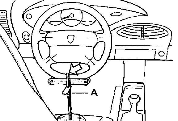 Use only steering wheel holders which do not project into the area of the airbag unit! If necessary, shorten the guide rod (A) at top (arrow).
