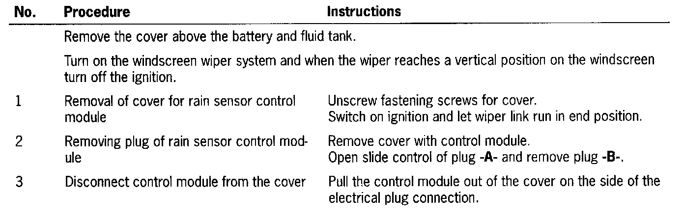Removing and installing control module for rain sensor