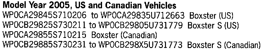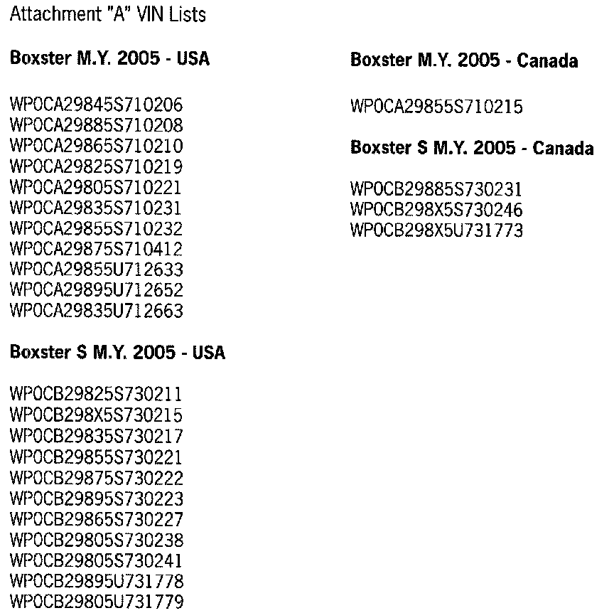 Not every vehicle in the below listed range may be affected. Use the ranges below as a general guideline. Refer to Attachment "A" to determine if a particular vehicle is eligible for this service action. Alternatively, the VIN can be checked in the Porsche e-DCS/WWS for confirmation of an open service action.
