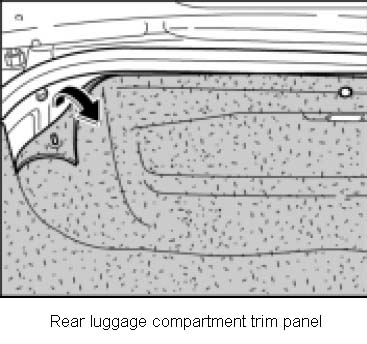 Open rear luggage compartment lid and lever out the clips for the carpet lining using the disassembly tool. Disassembly tool, universal NR.21