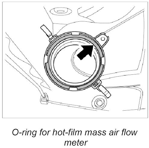 2. Push air flow sensor into air cleaner housing flange. Ensure correct seating of the O-ring.