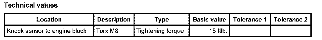 1. Insert knock sensor -3- in the original position and then screw in and tighten the Torx screw (M8 x 35) -2- . - Tightening torque: 15 ftlb..