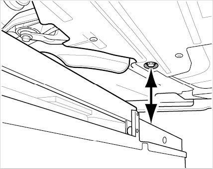 Due to the restricted space, to tighten the lock nut of the left camber eccentric, use a 3/8 inch torque wrench (covering the range of 100 Nm (74 ftlb.)) together with a 18 mm socket-wrench insert.