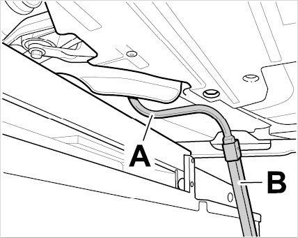 Use special tool (socket wrench insert) P 9730 -A- together with a torque wrench -B- to loosen and tighten the tie rod lock nut(s). The tightening torque of 50 Nm (37 ftlb.) for the tie rod lock nut(s) corresponds to a value of approx. 32.5 Nm (24 ftlb.) when using a socket wrench insert P 9730.