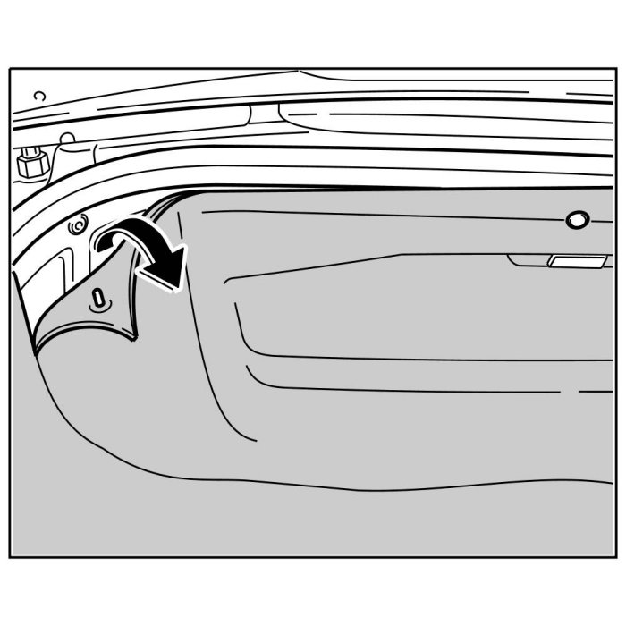 1. Open rear luggage compartment lid and and lever out the clips for the carpet lining using the removal tool.