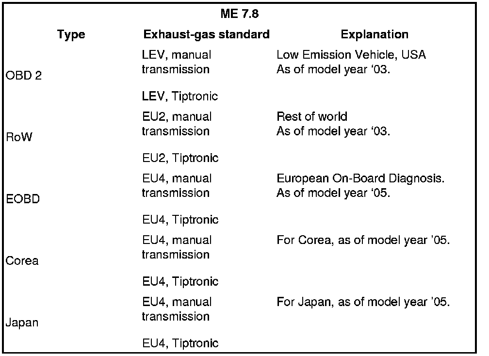 In some countries (currently USA, Canada) the Ready status must be obtained following a test drive or by using the Porsche System Tester after the DME control unit has been programmed. If in doubt, contact the relevant importer.
