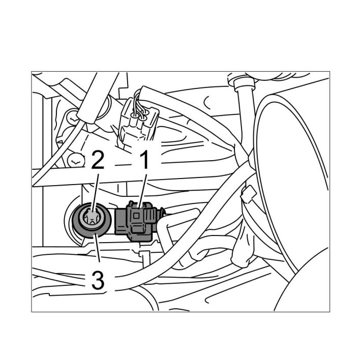 1. Insert knock sensor -3- in the original position and then screw in and tighten the Torx screw (M8 x 35) -2-. => Tightening torque: 15 ftlb..