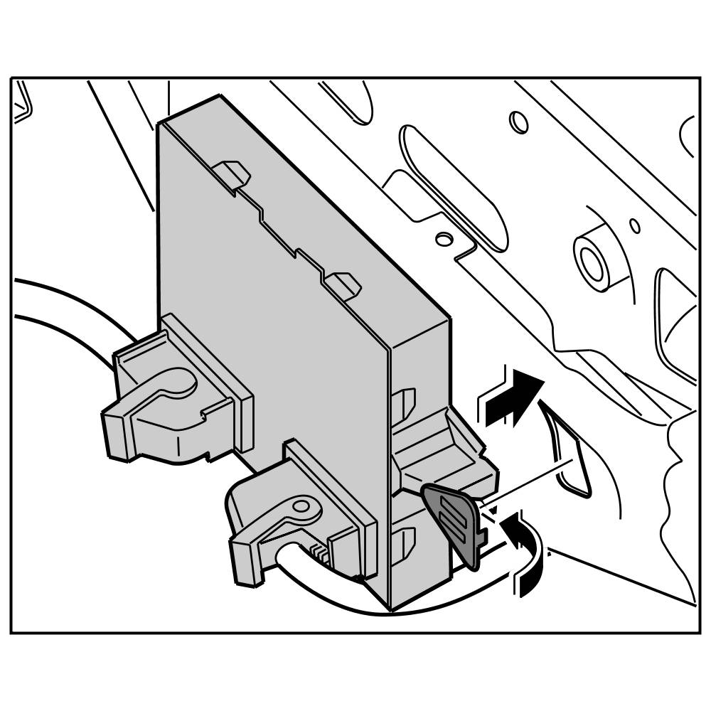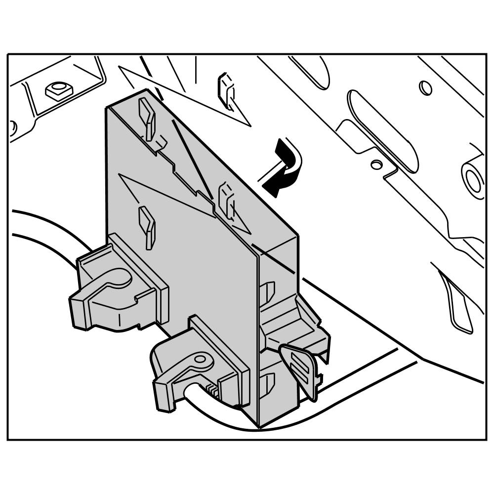 3. Clip in control unit on the support for the steering wiring and engage the locking mechanism for the lock.