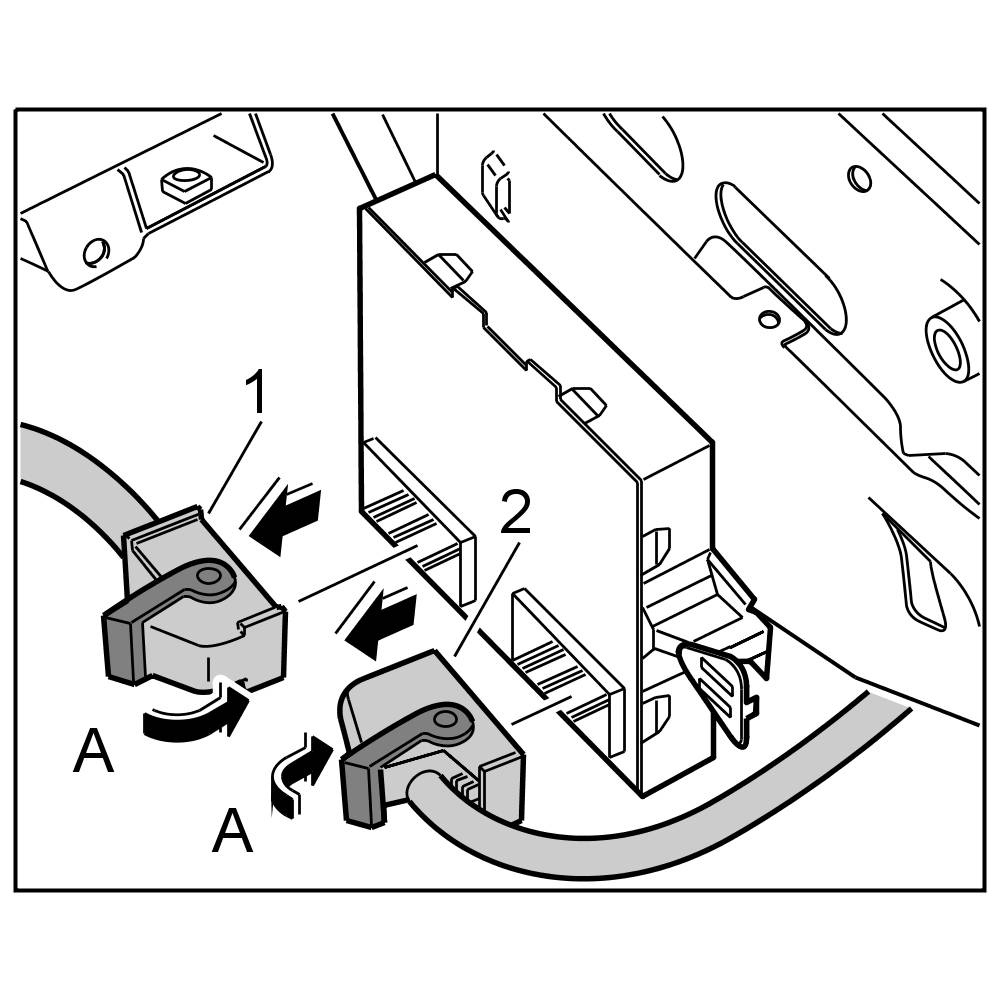 1. Press both electrical connectors -1, 2- into control unit and lock them until they are felt to engage.
