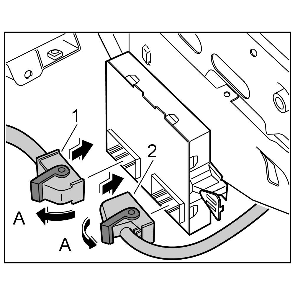 4. Release both electrical connectors -1, 2- -A- and unplug them from the control unit.
