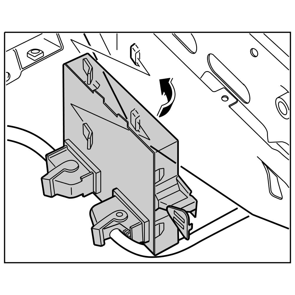 2. Engage control unit in support for wiring harness with both retaining lugs.
