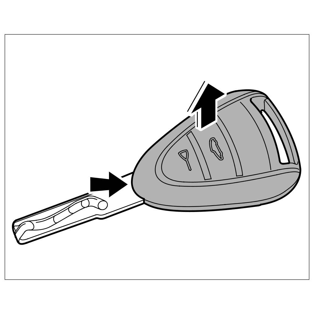 1. Push the key into the bottom part until the sliding latch -arrow- engages perceptibly.
