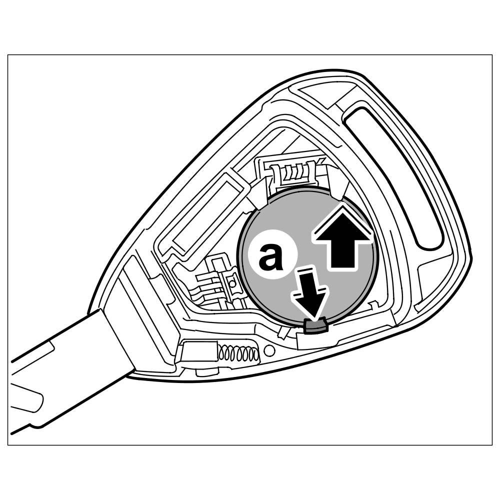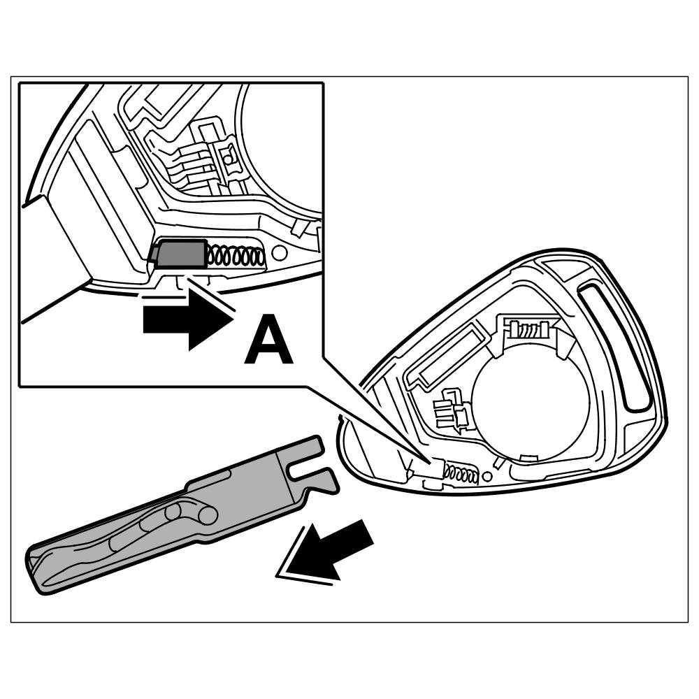1. Push the sliding latch back using a small screwdriver -arrow A- and pull the key out of the bottom part.