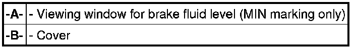 - Disengage and remove cover over brake fluid reservoir -B-. Check brake fluid level.