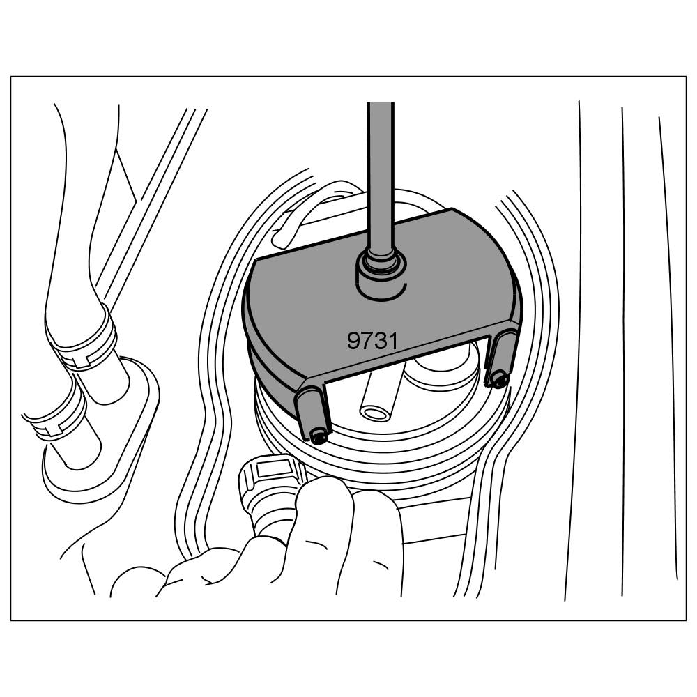 Tighten metal cap using special tool lug wrench P 9731.