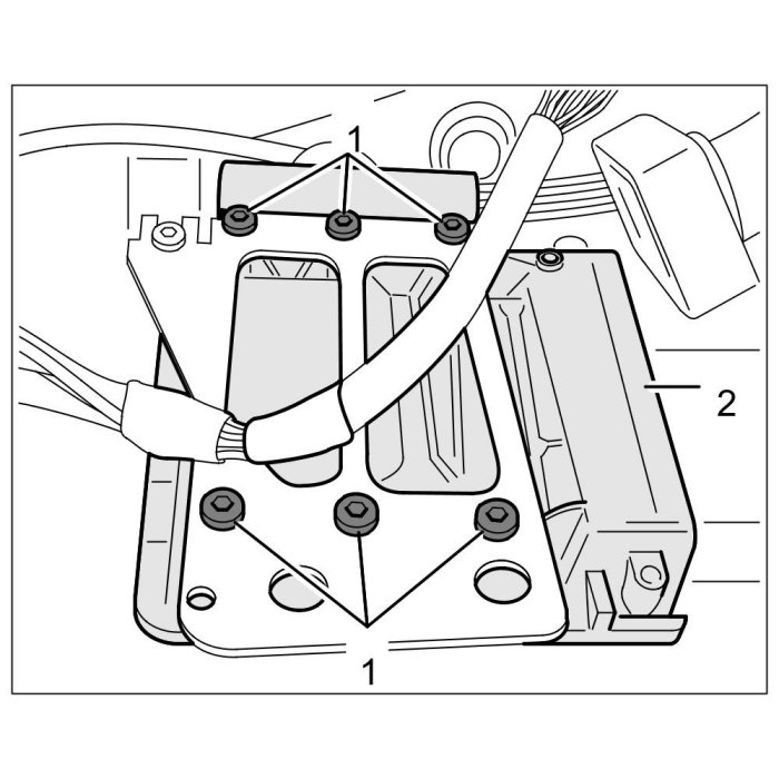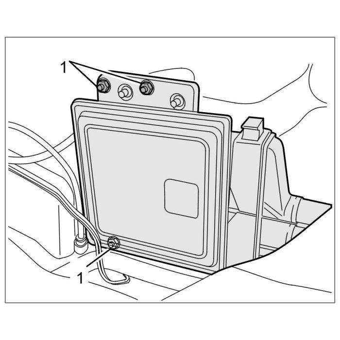 1.1. Screw off the three fastening nuts -1- on the DME control unit holder.