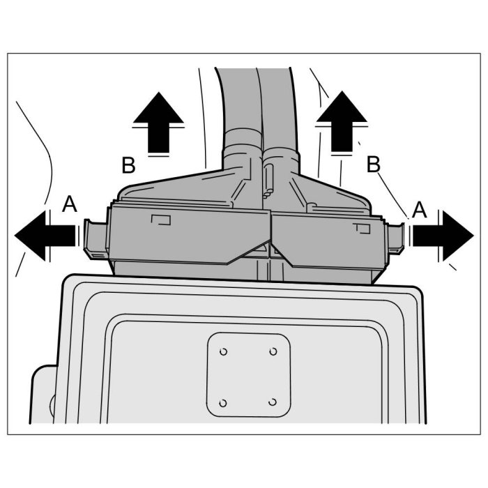 2.1. Release the two connectors at the locking mechanism -arrows A- and pull them off -arrows B-.