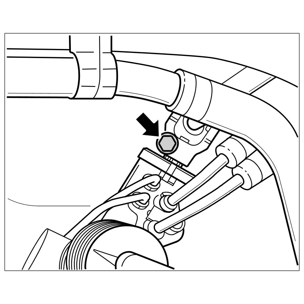 Remove protective plate (cover under tank). To do so, loosen the screw from the right and left tank restraining strap.