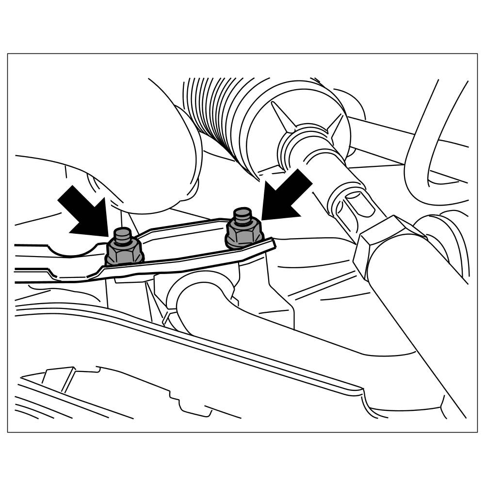 3. Loosen anti-roll-bar mount -arrows- and allow anti-roll bar to hang.