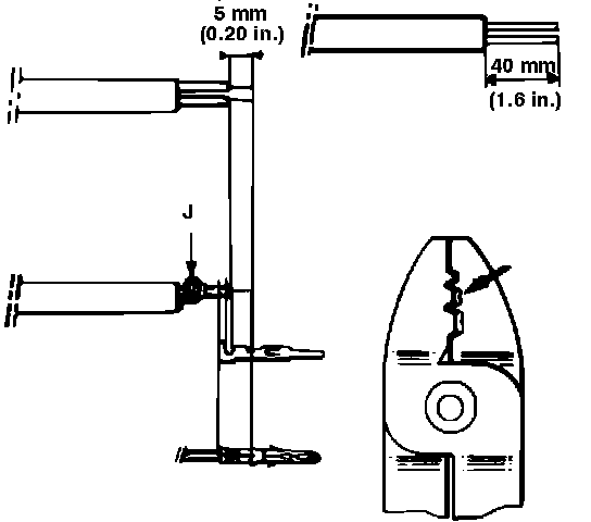 5. Install seals (J) and terminals on wire ends, then secure terminals with a suitable crimping tool, Fig. 7.
