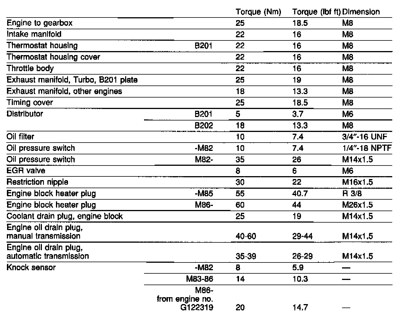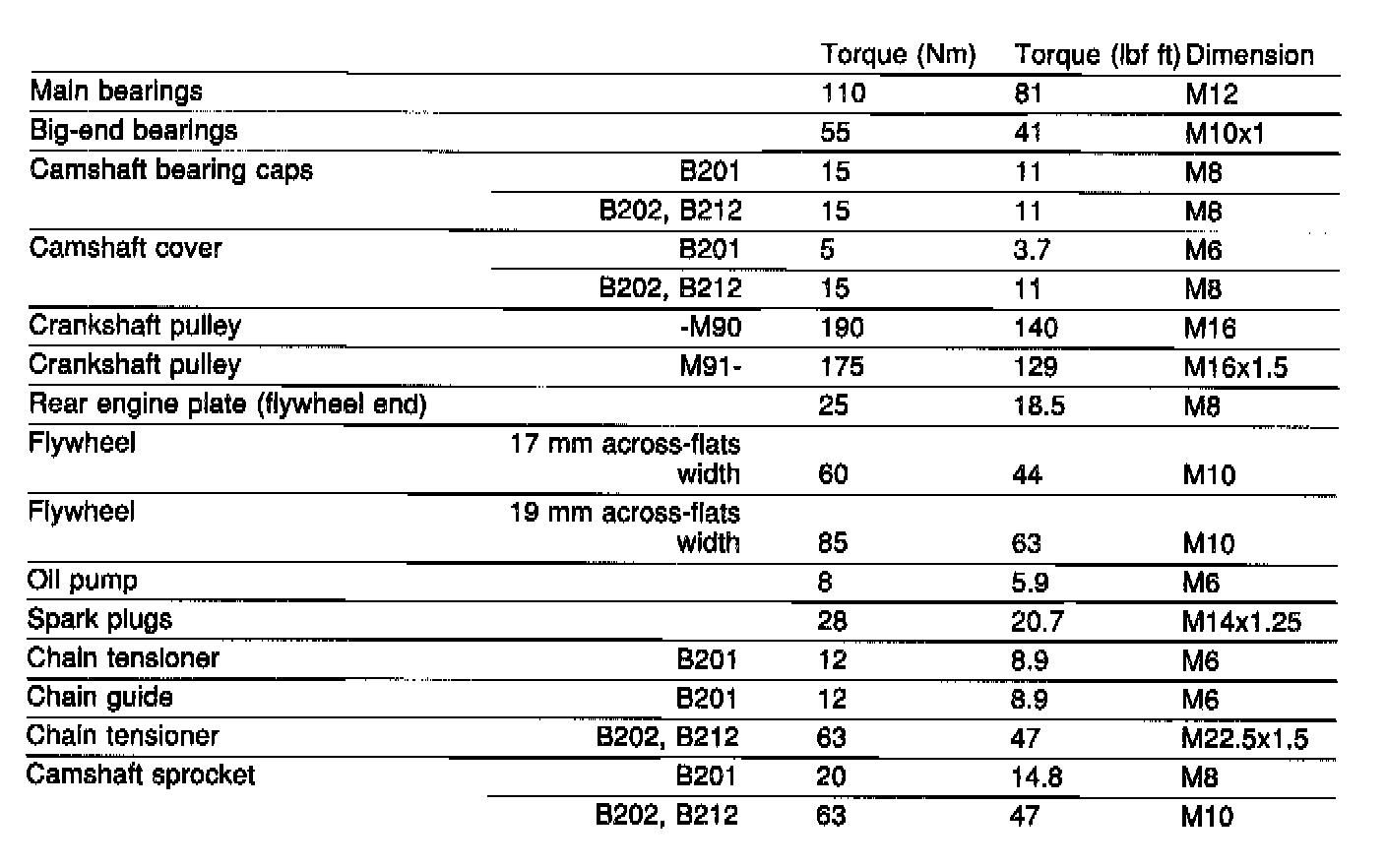 Engine Torque Specifications