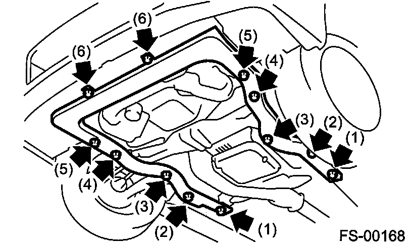 Note: Loosen bolt (1) and leave a few threads caught, then remove the bolts in the order of (2), (3), (4) and (5), (6).