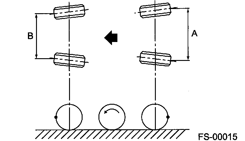 Mark each right and left tires at height corresponding to center of spindle and measure the distance "A" between marks.