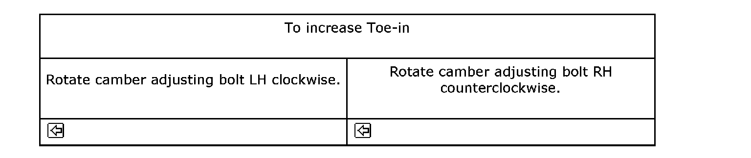 Make the thrust angle adjustments by turning toe-in adjusting bolts of rear suspension equally in the same direction.