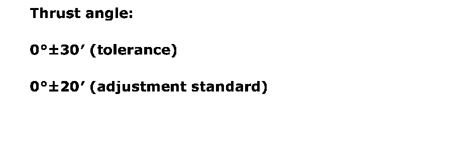 NOTE: Thrust angle refers to a mean value of right and left rear wheel toe angles in relation to the vehicle body center line. Vehicle is driven straight in the thrust angle direction while swinging in the oblique direction depending on the degree of the mean thrust angle.