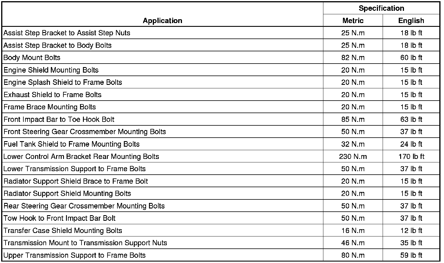Fastener Tightening Specifications