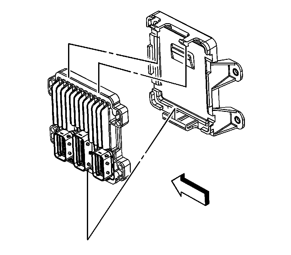 4. Set the PCM into the bottom retainer on the bracket and push the PCM rearward, engaging the 2 top retainers.
