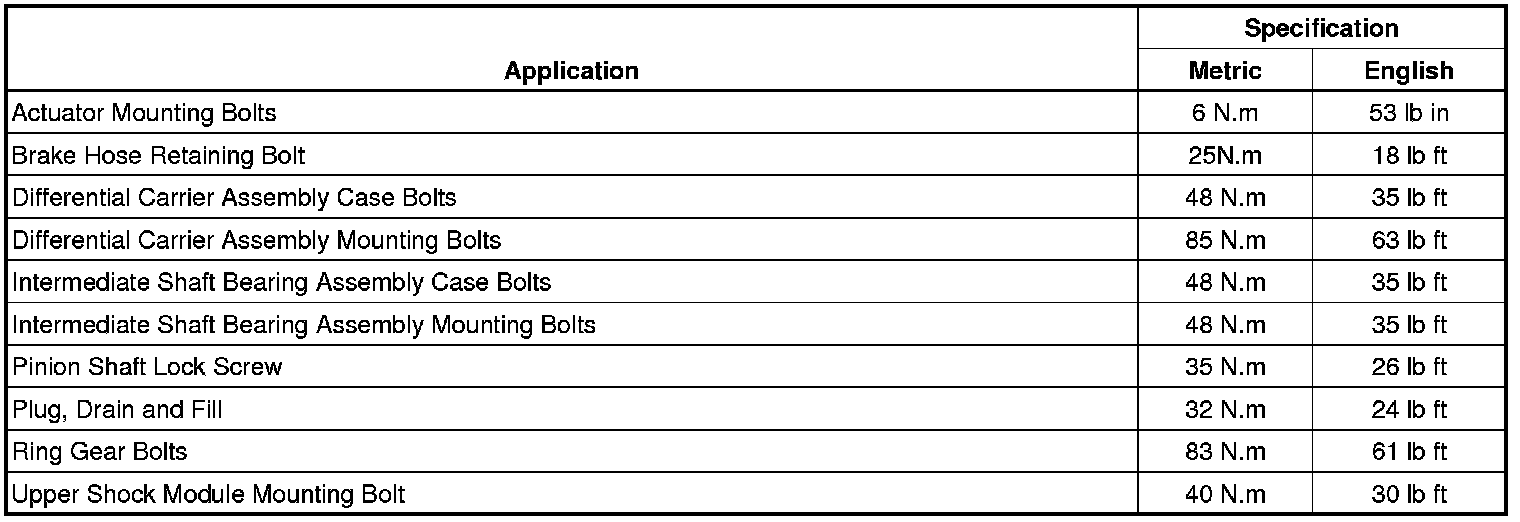 Torque Specifications