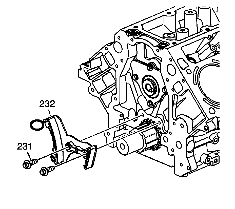 Install the timing chain tensioner (232) and bolts (231).