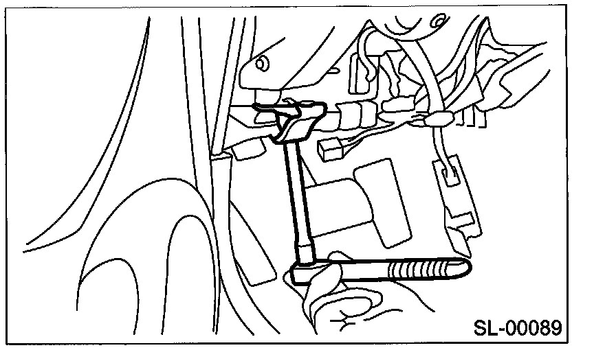 Remove the center pillar lower trim, and remove the side sill cover on passenger side. Remove the rear pillar lower trim. Pull back the floor mat. Remove the clip holding the cable.