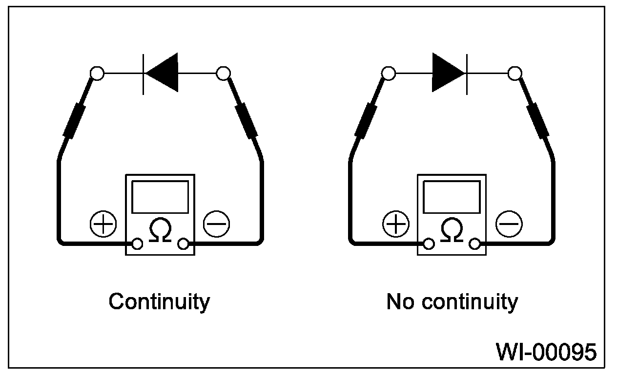 Use an ohmmeter to check for the diode continuity. When contacting the negative lead to diode positive side and positive lead to negative side, there should be continuity.