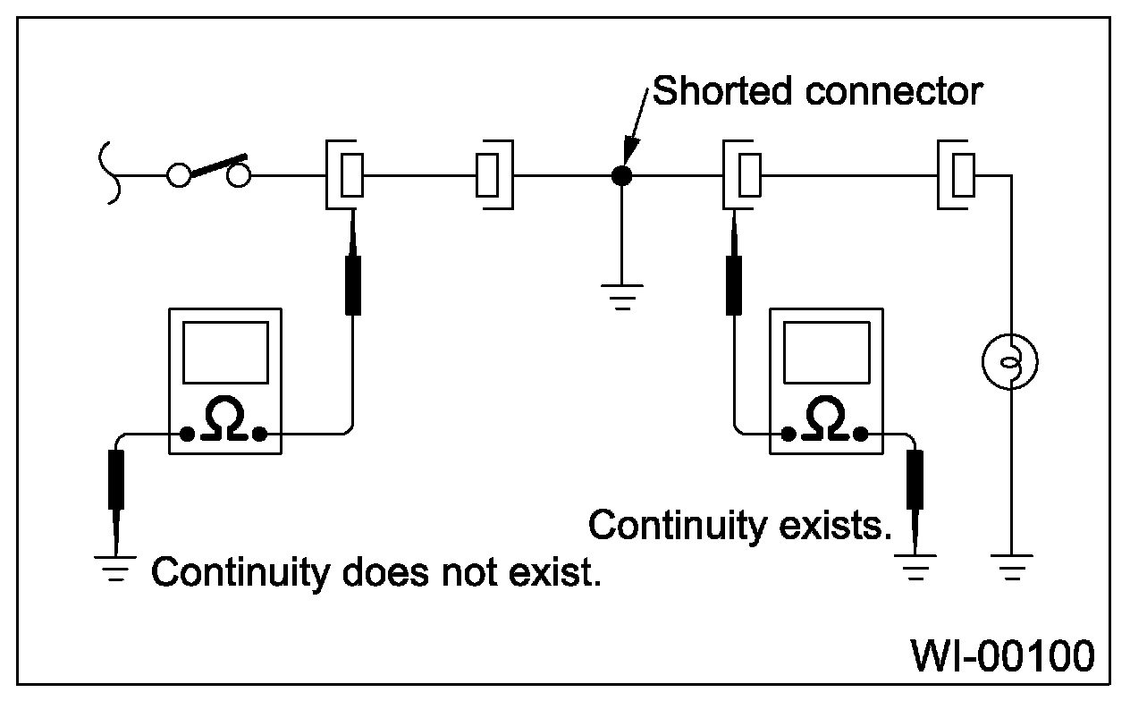 Disconnect all affected connectors, and check the continuity between each connector and ground. When the ohmmeter indicates continuity between a particular connector and a ground, that the connector is shorted.