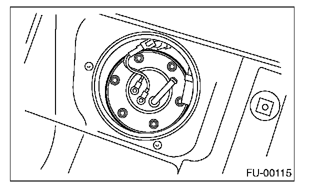 8. Remove the bolts which install the fuel sub level sensor on the fuel tank.