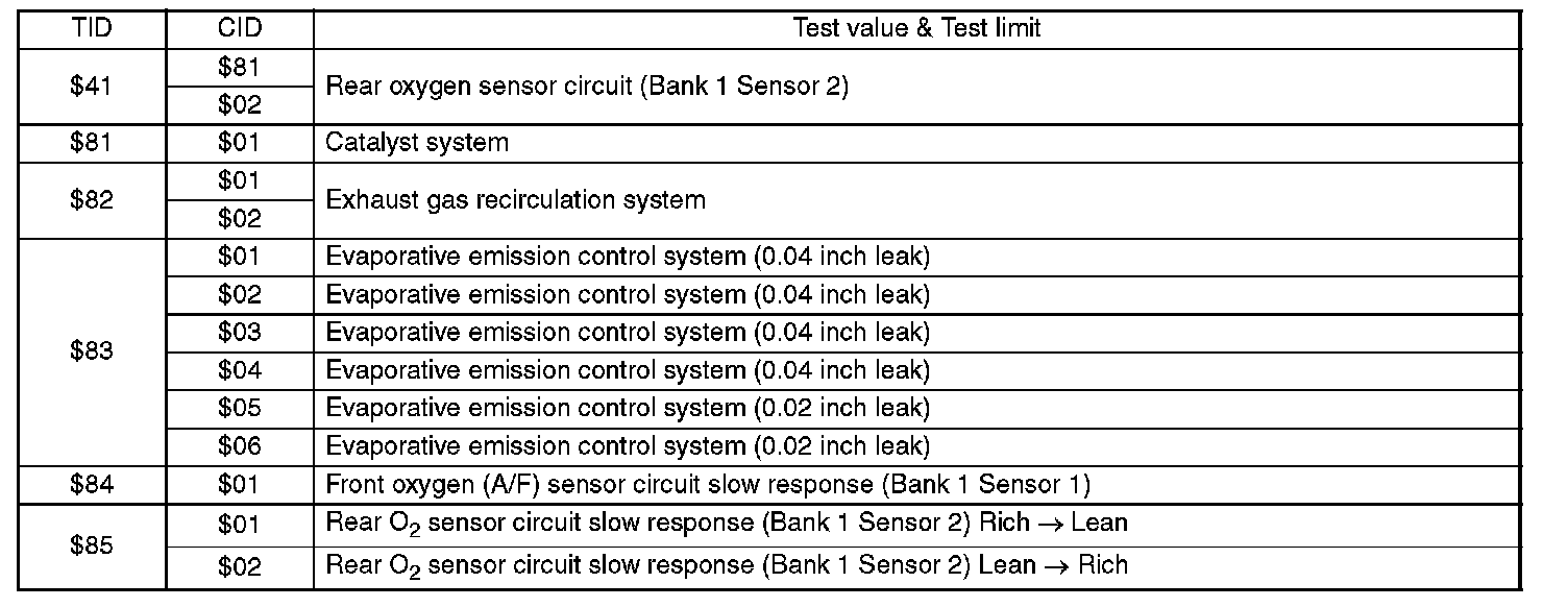 Refers to data denoting the operating condition when trouble is sensed by the on-board diagnosis system. A list of the support data and PID (Parameter Identification) codes are shown in the table.