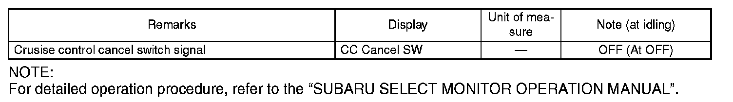 NOTE: For detailed operation procedure, refer to "SUBARU SELECT MONITOR OPERATION MANUAL"