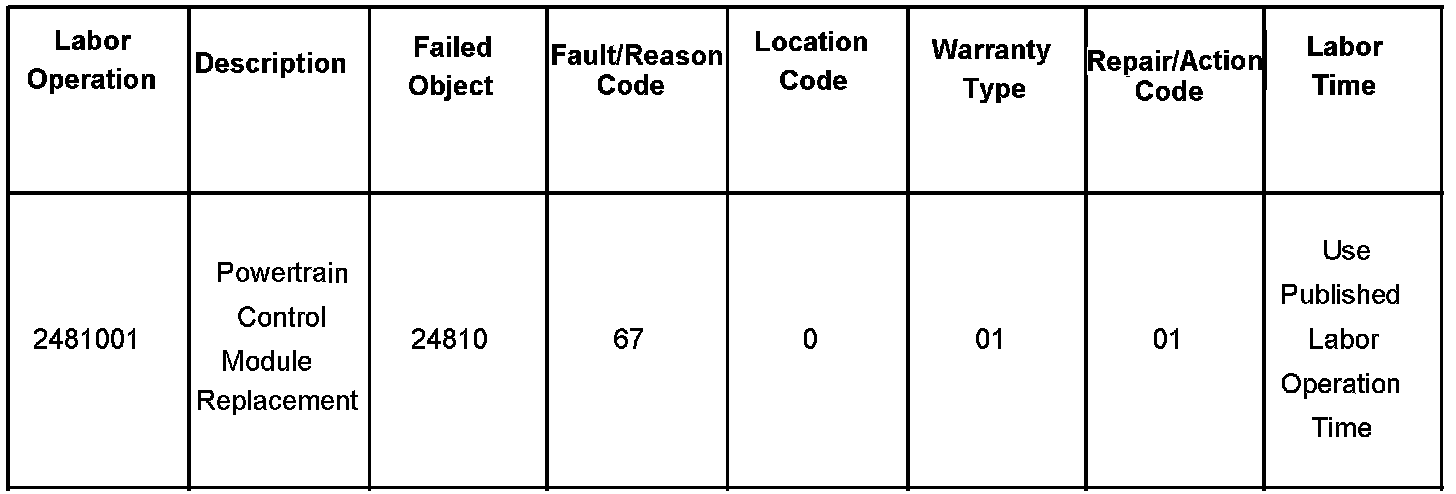 For vehicles repaired under warranty, use the table.