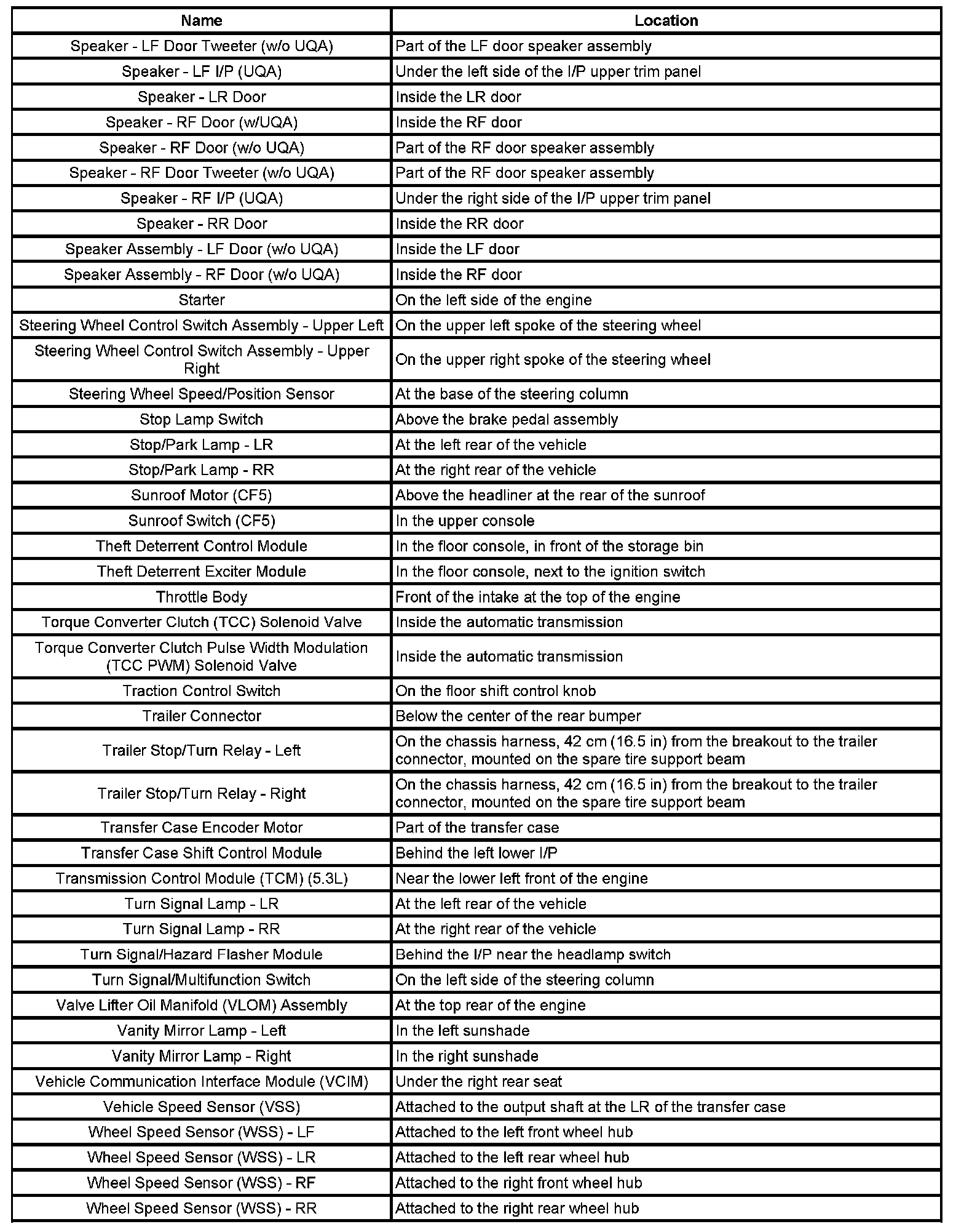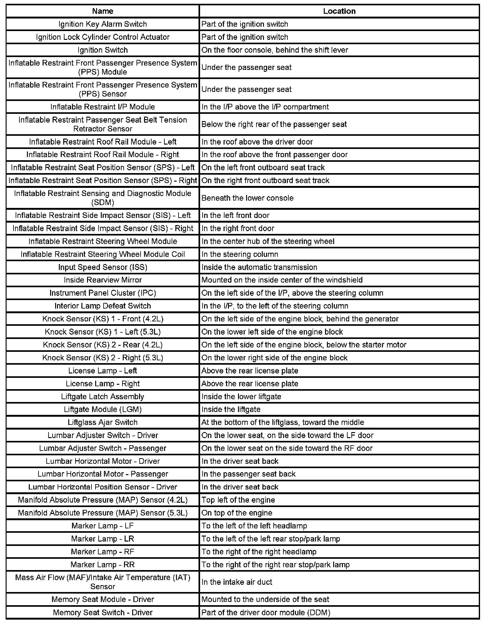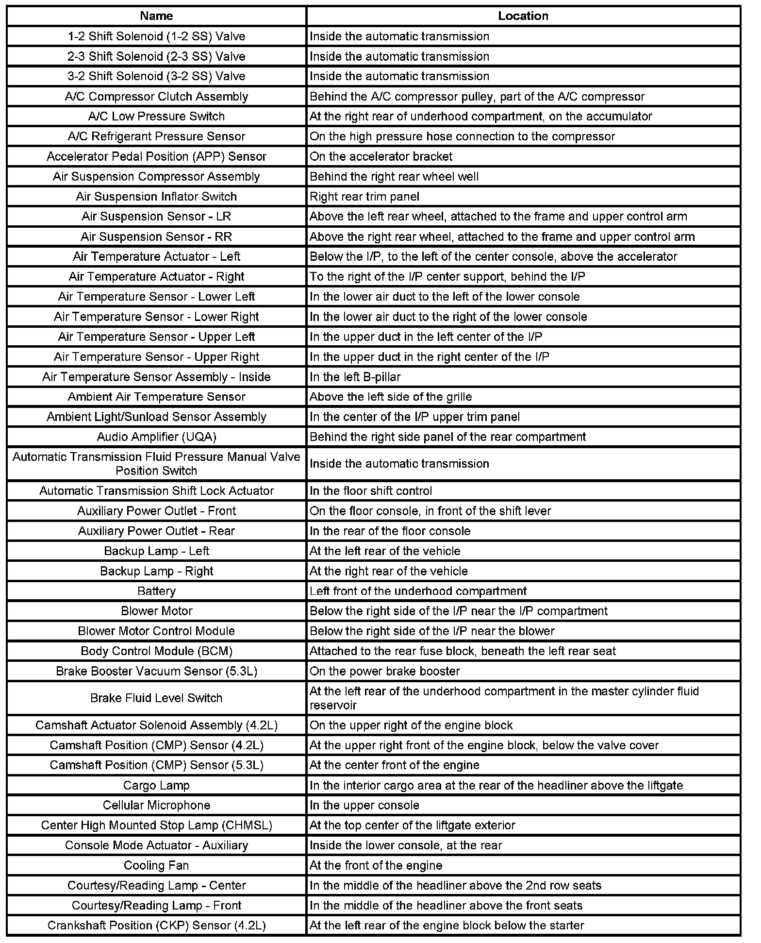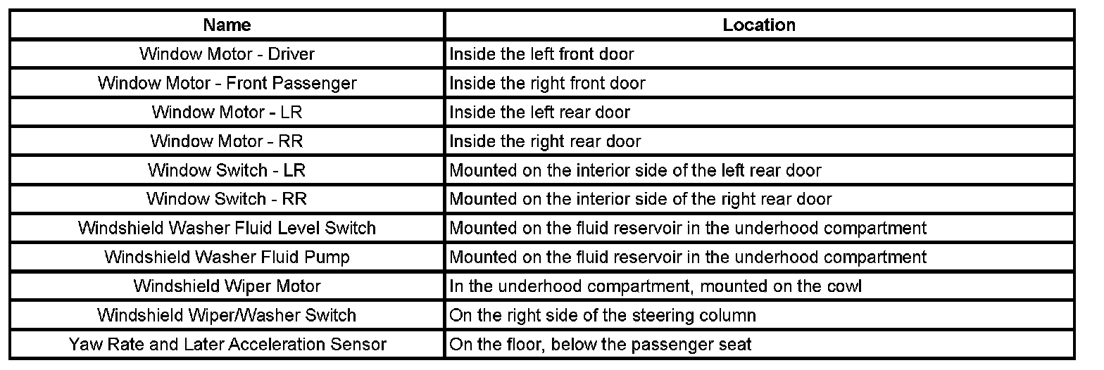 Master Electrical Component List