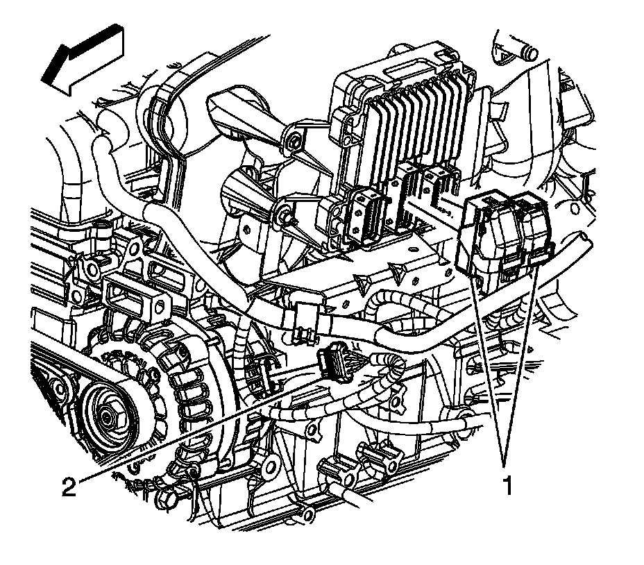 3. Disconnect the engine wiring harness electrical connectors (1) from the PCM.