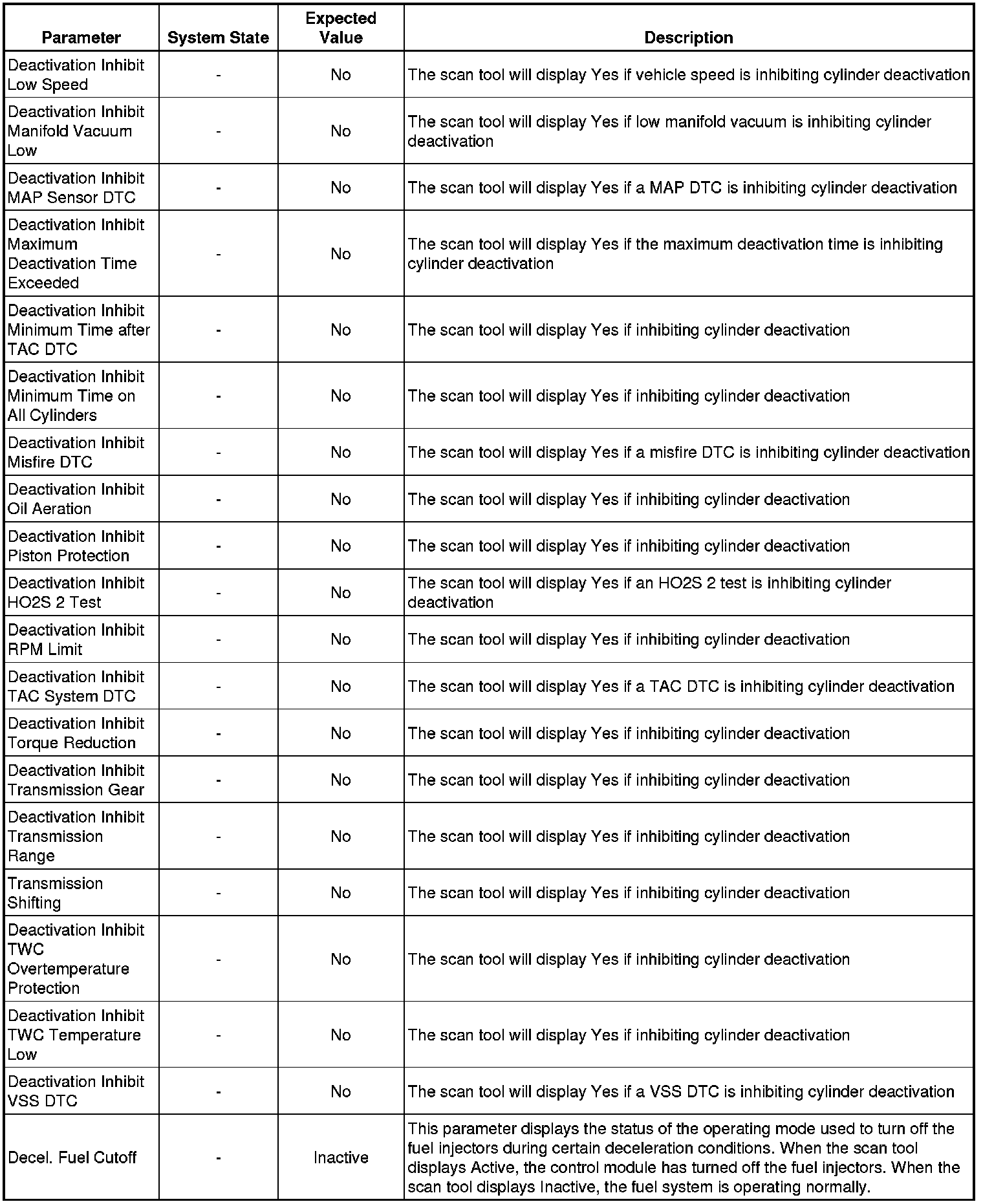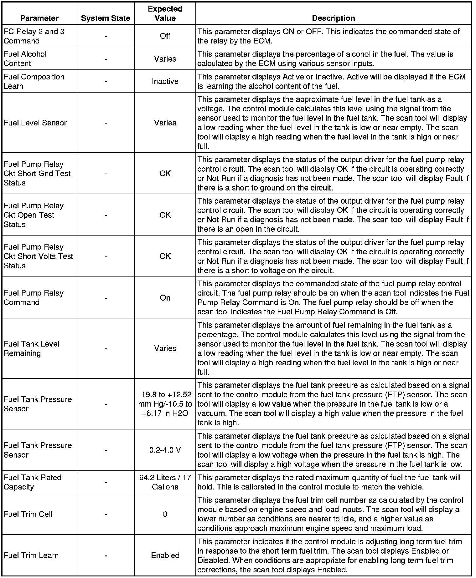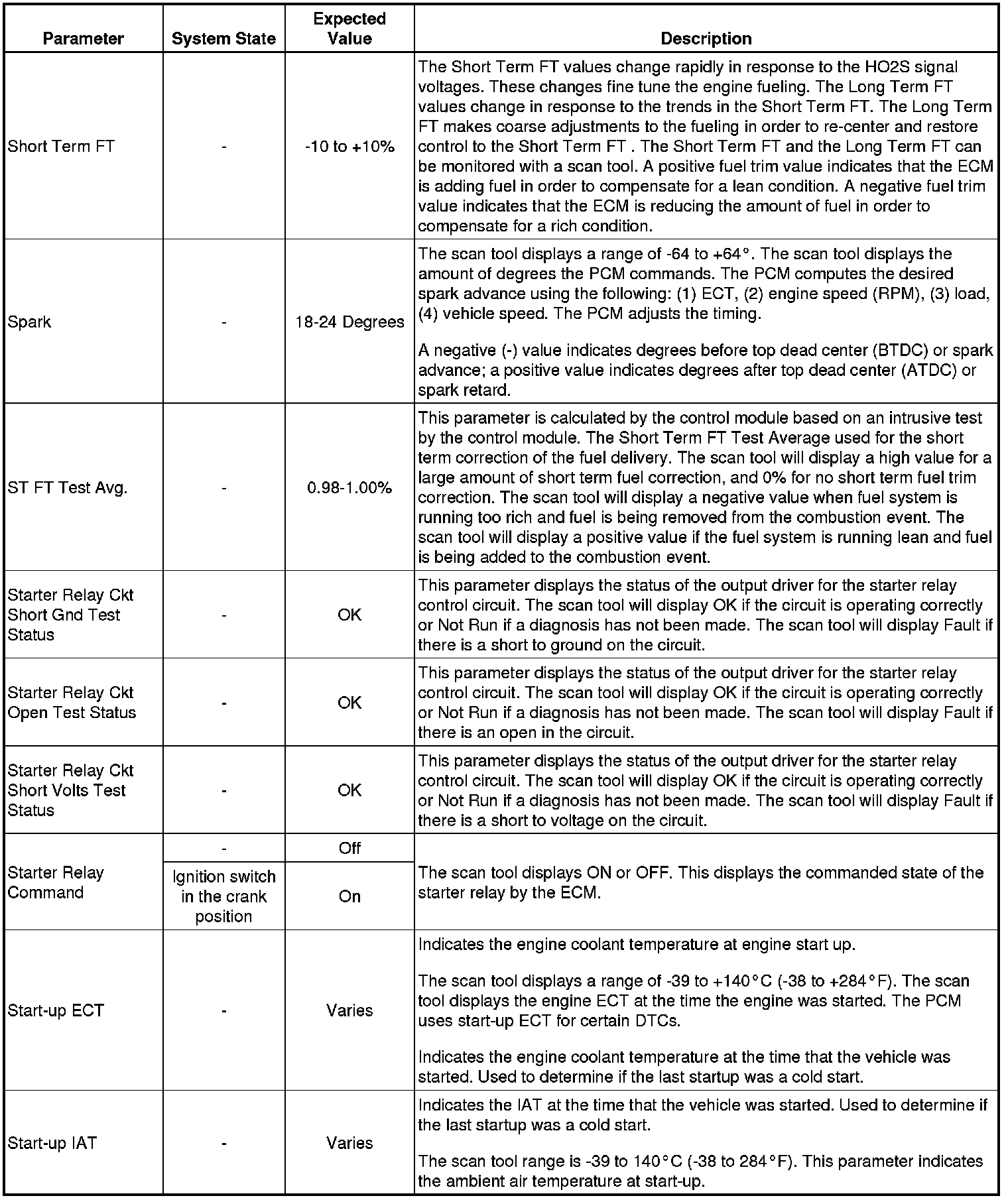 The Engine Control Module Scan Tool Data List contains all engine-related parameters that are available on the scan tool. The list is arranged in alphabetical order. A given parameter may appear in any one of the data lists, and in some cases may appear more than once, or in more than one data list in order to group certain related parameters together.