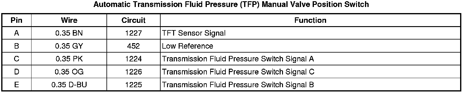 Automatic Transmission Fluid Pressure (TFP) Manual Valve Position Switch