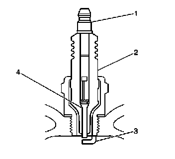 * Inspect for the correct spark plug torque. Refer to Ignition System Specifications ([1][2]Mechanical Specifications). Insufficient torque can prevent correct spark plug operation. An over torqued spark plug, causes the insulator (2) to crack.